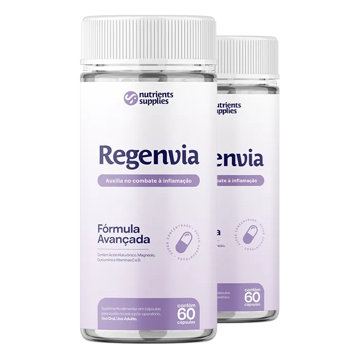 Regenvia é um suplemento nutricional desenvolvido para favorecer o bem-estar vascular, contribuir para o equilíbrio inflamatório e promover a regeneração tecidual. Sua fórmula reúne antioxidantes e bioativos de alta biodisponibilidade que auxiliam na circulação, reduzem o inchaço e aliviam a sensação de peso nas pernas. Também pode ser utilizado como suporte nutricional pré e pós-cirúrgico, auxiliando o organismo em fases que exigem recuperação e regeneração celular.